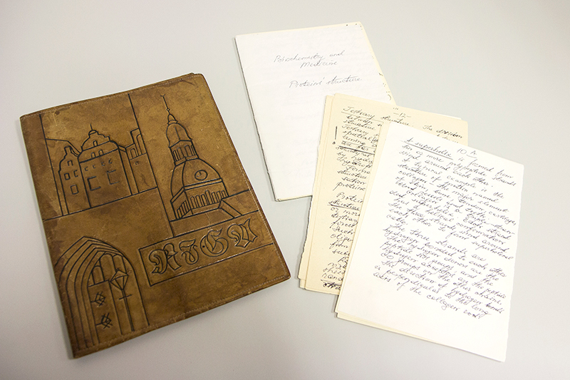Grāmatu vāki, kuros prof. Vladislavs Korzāns glabājis lekciju plānu "Biochemistry and Medicine.
