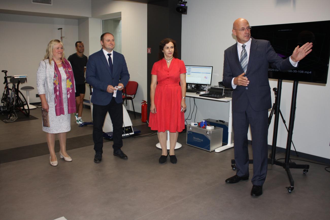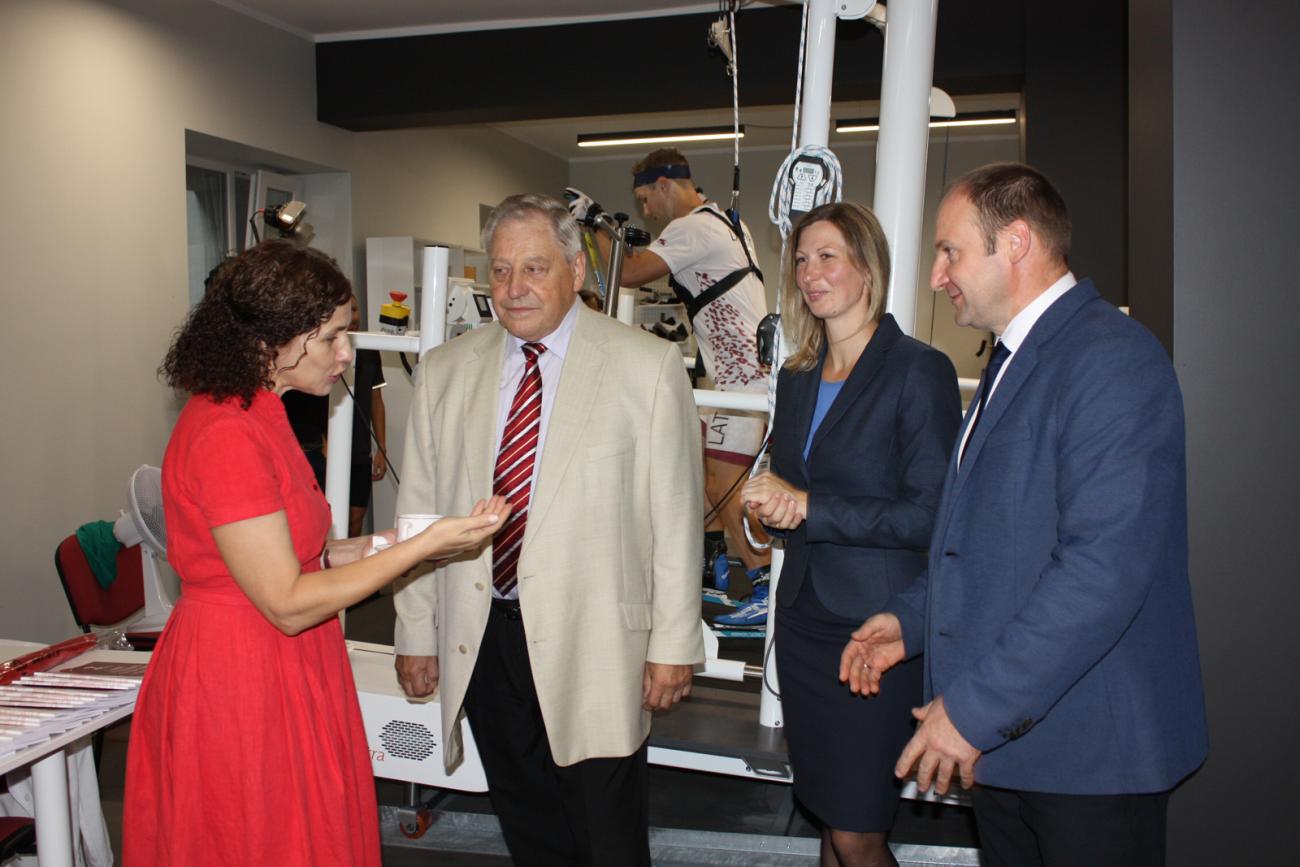 LSPA vadība – rektors Juris Grants, prorektori Jānis Žīdens un Andra Fernāte, kā arī Senāta priekšsēdētājs Uldis Grāvītis un Veselības aprūpes sportā izpētes centra vadītāja Anna Zuša, iepazīstināja izglītības un zinātnes ministri Ilgu Šuplinsku, Saeimas Sporta apakškomisijas deputātus Sandi Riekstiņu un Ivanu Klementjevu, Latvijas Olimpiskās komitejas prezidentu Žoržu Tikmeru un ģenerālsekretāru Kārli Lejnieku, Latvijas sporta federāciju padomes prezidentu Einaru Fogeli, arī augstskolu vadītājus un zinātniekus ar jaunajām centra telpām un zinātniskās aparatūras iespējām, kas būtiski uzlabos ne tikai LSPA pētniecisko un akadēmisko studiju darbu, gatavojot jaunos sporta un veselības aprūpes speciālistus, bet arī sniegs pozitīvu ieguldījumu Latvijas sporta nozares attīstībā.