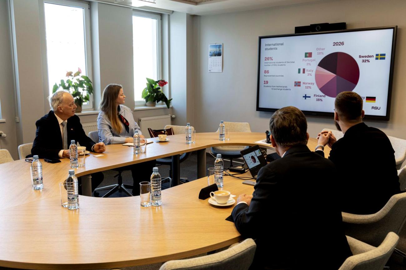 Vizīte RSU noritēja atvērtā un ieinteresētā gaisotnē, apliecinot vēstnieka interesi par Latvijas augstāko izglītību, kā arī RSU starptautisko studiju vidi un studentu kopienu.