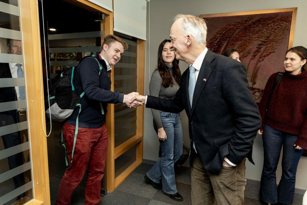 Vizītes laikā vēstnieks tikās arī ar RSU studentiem no Nīderlandes. Pašlaik RSU studē 19 studenti no Nīderlandes (desmit – medicīnas studiju programmā, deviņi – zobārstniecībā), kā arī divi apmaiņas studenti sociālajās zinātnēs. Tikšanās laikā studenti dalījās savā pieredzē par studijām RSU, studiju vidi un dzīvi Latvijā. Vēstnieks pauda gandarījumu par dzirdēto un uzsvēra, ka studenti ļoti atzinīgi novērtē studiju kvalitāti un pieredzi RSU.