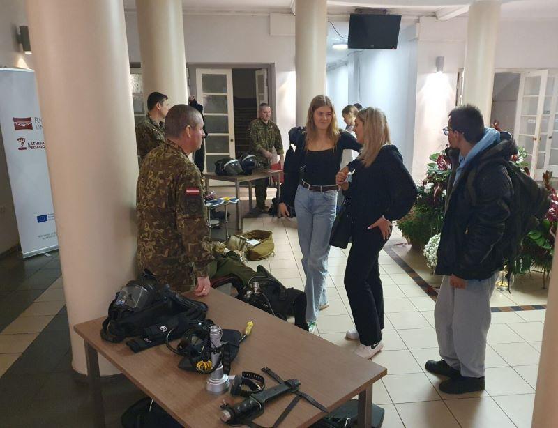 A highlight of the event for the students was meeting LASE graduates Lance Corporal Linda Jakovele and First Lieutenant Matīss Gabdulļins, who shared their personal experiences and discussed the challenges and opportunities of serving in the Military Police. The participants also had the chance to meet Jack, a trained service dog, and explore a range of military equipment, including crowd control gear, diving equipment, and military transport.