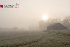 | RSU 75th anniversary logo. Picture of country house in the mist. Language: Latvian. Size: 1920x1080px |