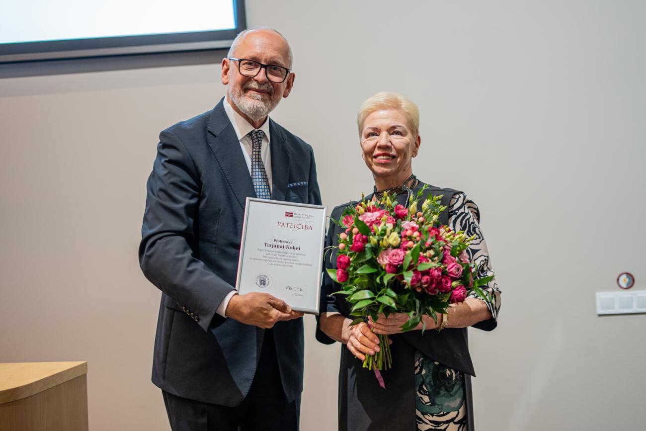 RSU rektors prof. Aigars Pētersons izteica pateicību prof. Tatjanai Koķei un prof. Jānim Gardovskim par PIC izveides ideju, kā arī PIC direktorei un izveidotājai asoc. prof. Norai Jansonei-Ratinikai par izcilu darbu 10 gadu garumā.