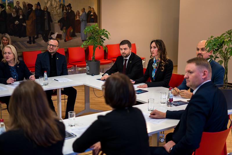 RSU rīkotajā apaļā galda diskusijā piedalījās gan Latvijas augstskolu un valsts pārvaldes institūciju pārstāvji, gan Ukrainas partneri. Diskusijas ievadā RSU Sociālo zinātņu fakultātes dekāne un projekta vadītāja asociētā profesore Karina Palkova vērsa uzmanību uz tādiem jautājumiem kā pieaugošā ģeopolitiskā spriedze un tehnoloģiskās atkarības un hibrīddraudi, kas padara Latvijas augstskolas un zinātniskās institūcijas par potenciāliem ārvalstu ietekmes mērķiem un aktualizē jautājumu, vai Latvijas un Eiropas augstskolas ir gatavas šādiem izaicinājumiem. Asoc. prof. K. Palkova savā ievadrunā vērsa uzmanību uz iespējām mazināt ārvalstu spiediena ietekmi uz akadēmisko brīvību un pētniecību un mācību no Ukrainas pieredzes – no valsts, kura savu akadēmisko un zinātnisko potenciālu saglabājusi pat kara apstākļos.
