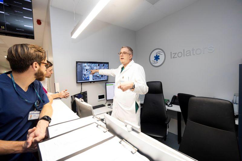 A. Višņakovs, izrādot multifunkcionālo NMPUK korpusu, neslēpj, ka jaunie ārsti ir prasīgi un grib strādāt modernā un sakārtotā vidē. Viņš, piemēram, izrāda gaiteni, aiz kura durvīm atrodas izolatori, kas domāti smagu infekciju pacientiem un kuros ir negatīvais spiediens – atveroties durvīm, sistēma notur spiediena diferenci, un gaitenis paliek sterils. Durvis pēc noteikta algoritma aizveras – sākumā gan tas radījis pārpratumus, jo gadījies arī kādā telpā iestrēgt.