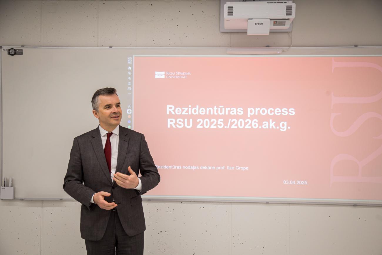 Pasākumu atklāja RSU prorektors akadēmiskajā darbā asoc. prof. Dins Šmits, kurš uzsvēra rezidentūras laikā iegūto profesionālo, komunikācijas un sadarbības prasmju nozīmi.