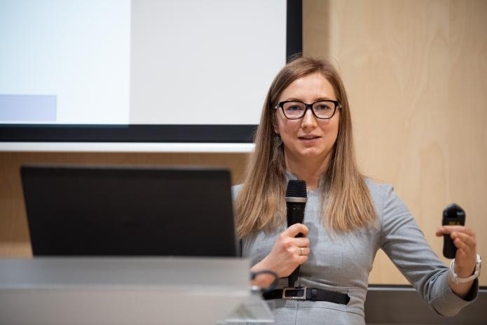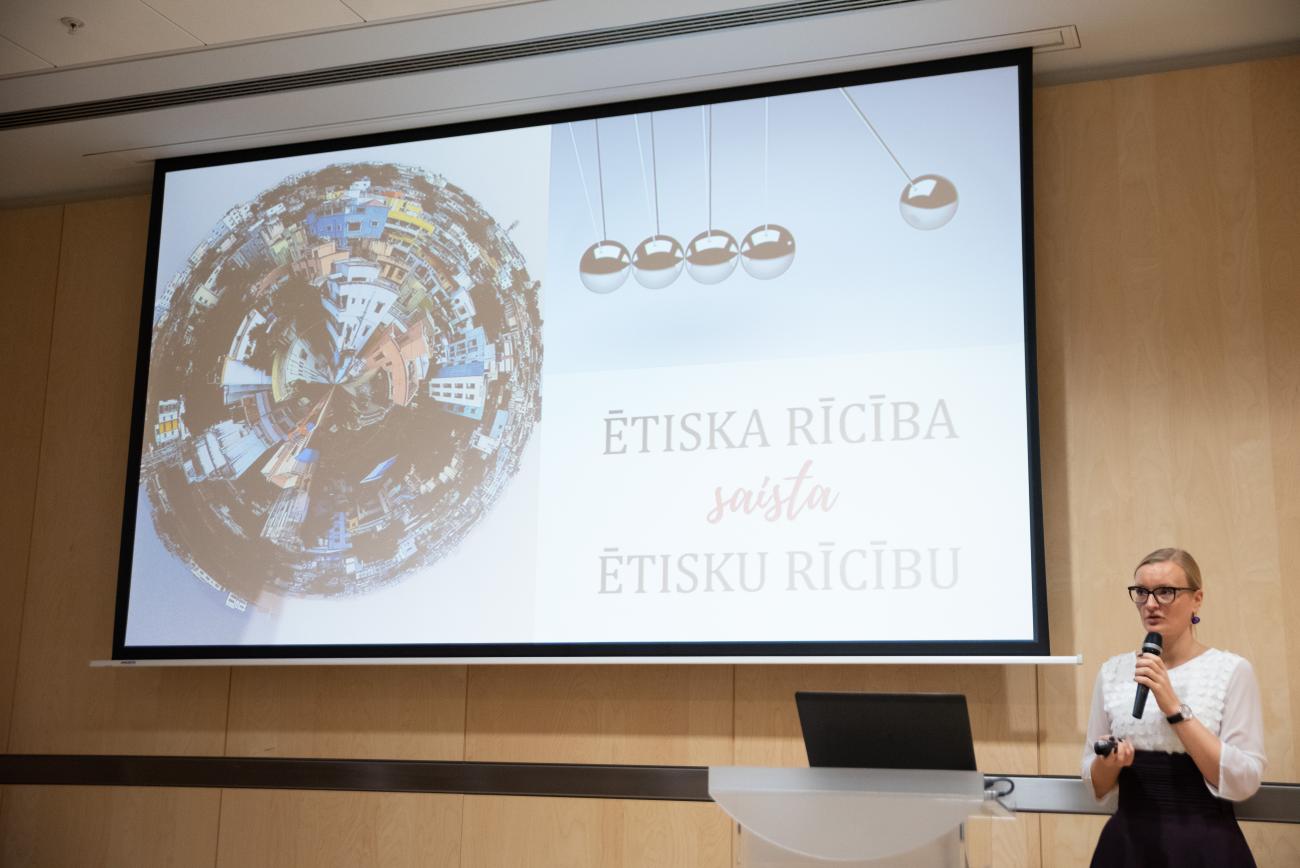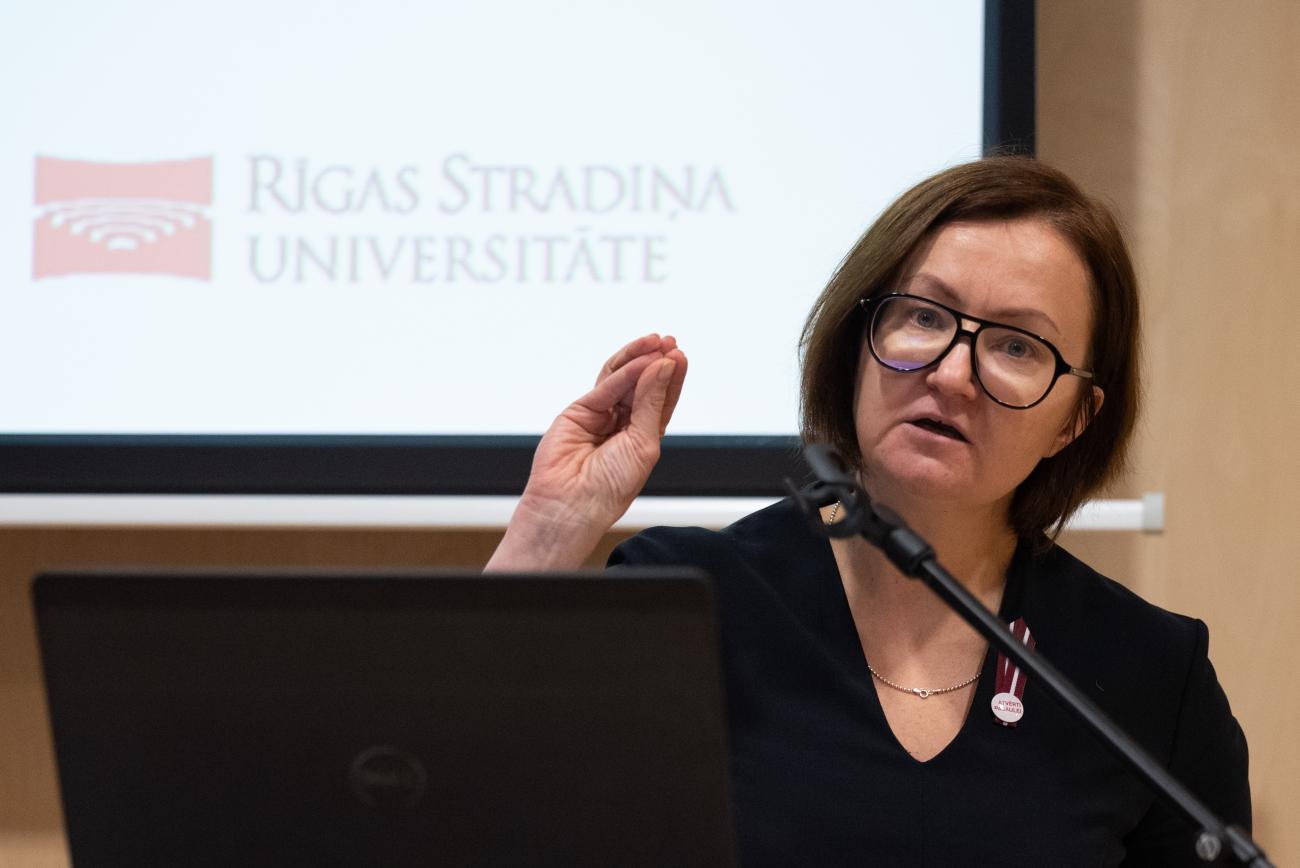 RSU Pedagoģiskās izaugsmes centra direktore Nora Jansone-Ratinika dalījās pieredzē, kā ar centra īstenotajām mācību aktivitātēm, pieredzes apmaiņas pasākumiem un konsultatīvo darbību tiek atbalstīta RSU docētāju kompetences pilnveide ētiskas un akadēmiski godīgas studiju vides veidošanai.