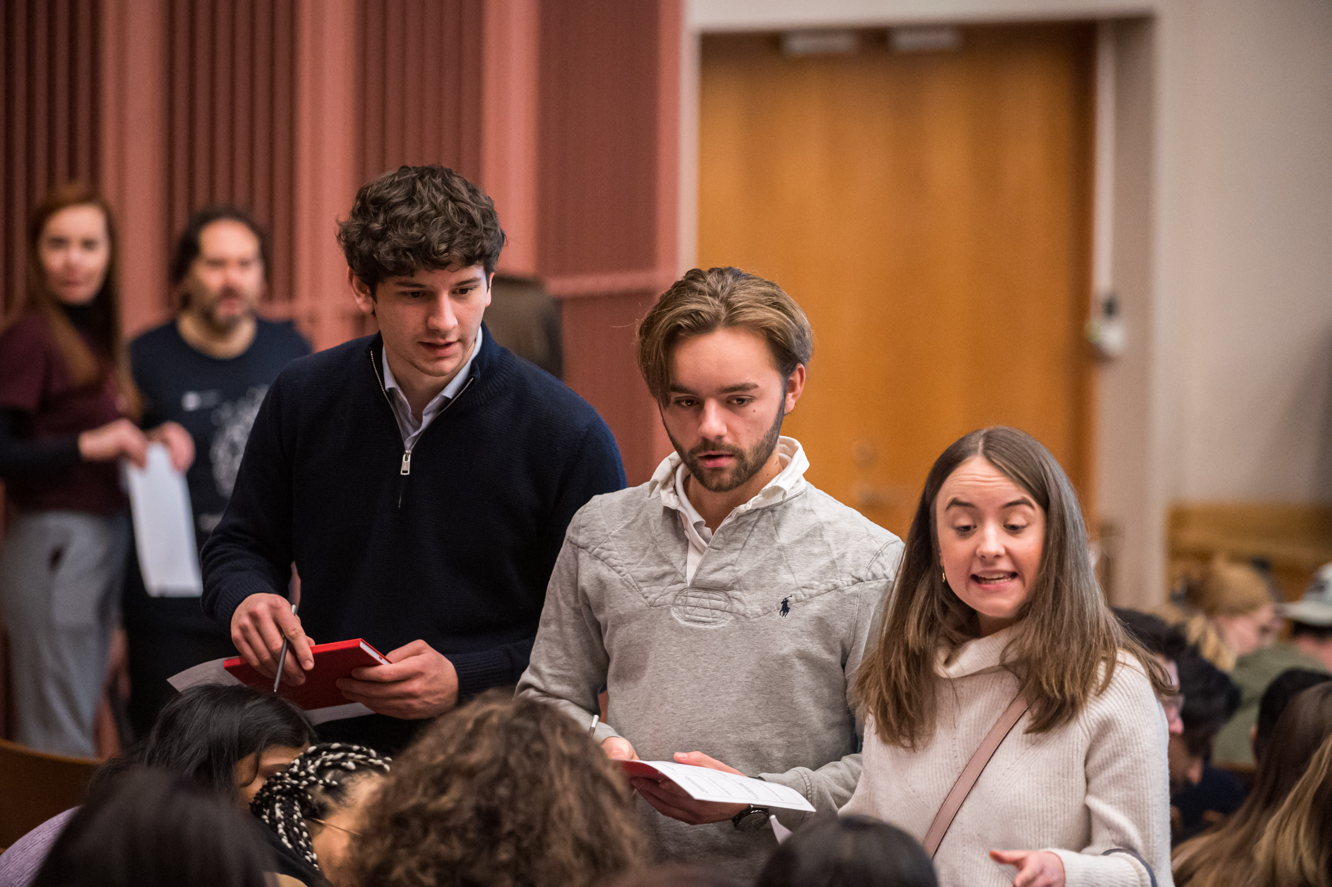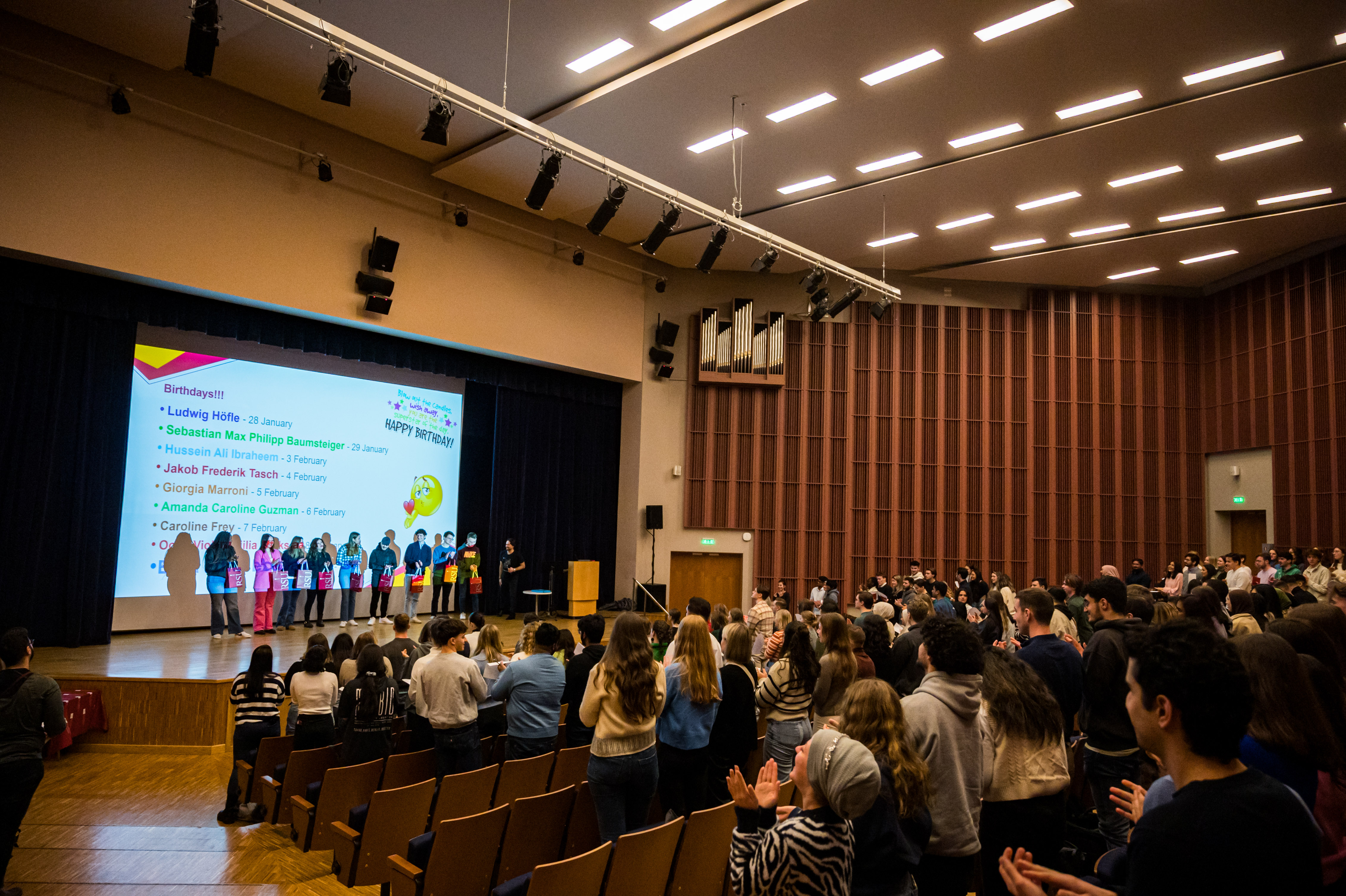 Neizpalika arī šīs nedēļas jubilāru – deviņu jauno studentu – sveikšana ar dāvanām un teju 300 studiju biedru kopkora izpildītu apsveikuma dziesmu.