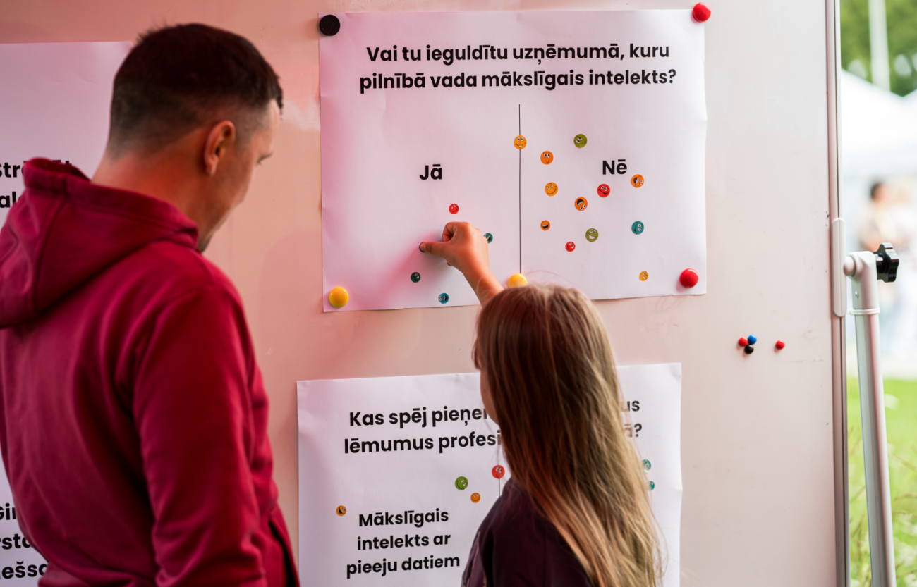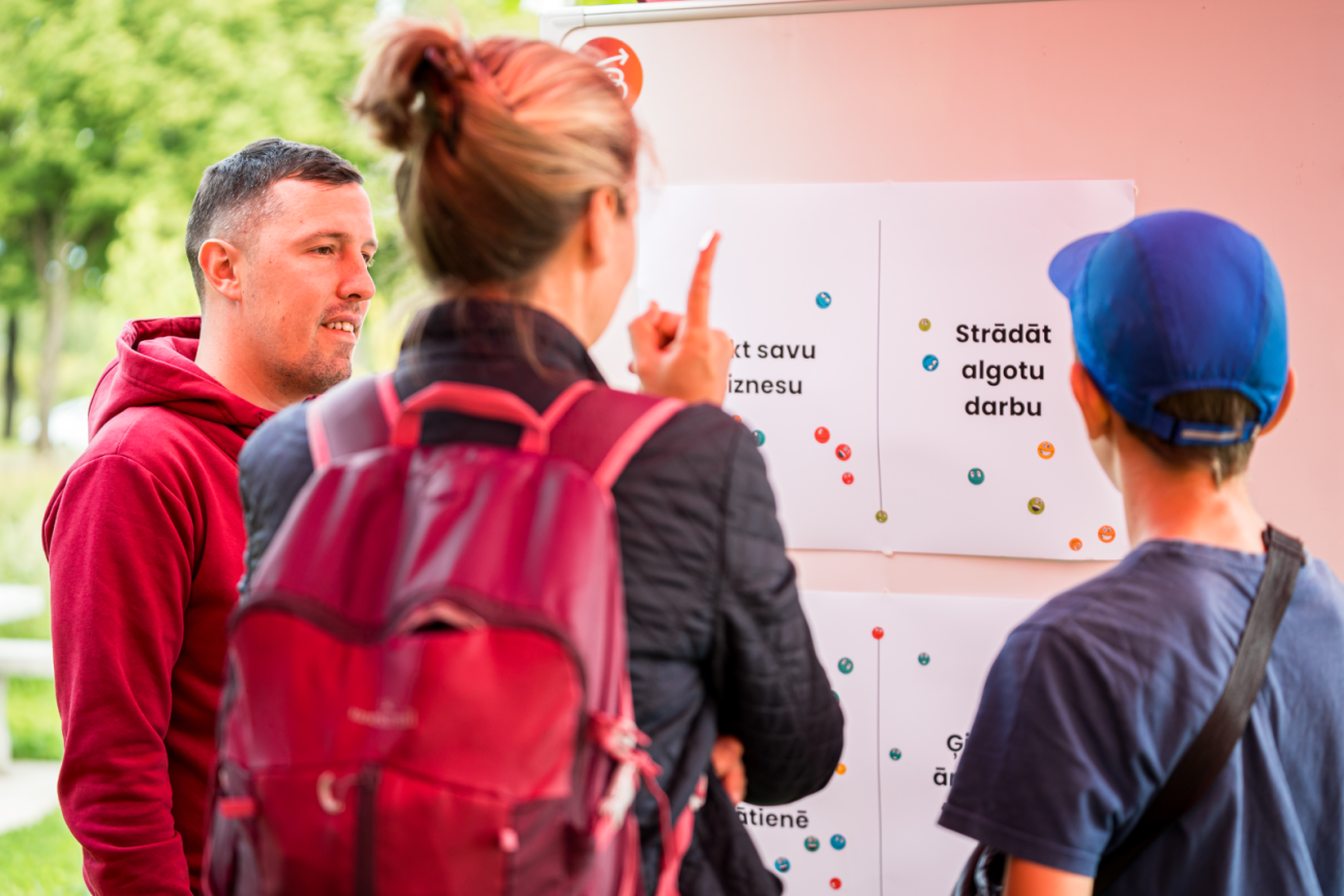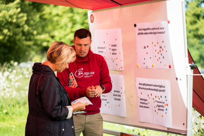 Biznesa inkubators B-Space pasākuma laikā aicināja klātesošos piedalīties aktivitātē Ideju fitness. Tās pirmais solis bija fiziska izkustēšanās – iespēja iesist vārtos bumbu vai sacensties ar draugiem futbola prasmēs. Turpinājumā katrs RSU telts viesis tika aicināts paust savu viedokli četrās aktuālās dilemmās. Lielākā daļa apmeklētāju atzina, ka profesionālajā sportā veiksmīgākus lēmumus tomēr spēj pieņemt treneris ar ilggadēju pieredzi, nevis mākslīgais intelekts, kas balstās tikai datos. Tāpat vairums neizvēlētos uzticēt savu naudu uzņēmumam, kuru pilnībā vada mākslīgais intelekts. Īpaši izteikts vairākums atzina, ka ģimenes ārstu labprātāk apmeklētu klātienē, nevis attālināti, savukārt jautājumā par uzņēmējdarbību viesi sliecās izvēlēties algotu darbu, tādējādi apliecinot, ka uzņēmējdarbības ceļš nav piemērots visiem.