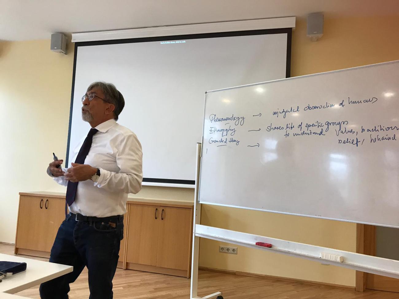 Prof. Bicers lekciju un viessemināru ciklā sīkāk aplūkoja pētījumu veikšanas iespējas, prasības un sarežģījumus, ar kādiem varētu saskarties, un variantus, kā tos atrisināt.