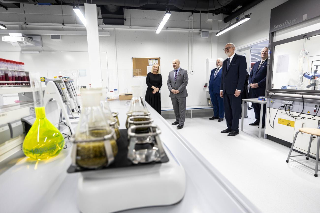 RSU vadība kopā ar ASV vēstniecības delegāciju devās ekskursijā RSU Farmācijas studiju un pētniecības centra telpās. ASV vēstniekam K. Robinsonam bija iespēja ielūkoties arī Farmācijas fakultātes mūsdienīgi iekārtotajās ķīmijas laboratorijās, kas izveidotas, konsultējoties ar farmācijas nozares profesionāļiem. RSU Farmācijas fakultātes vadība iepazīstināja ar atbilstoši iekārtotajām laboratorijas telpām un informēja viesus par aktualitātēm gan nozarē, gan zinātnes un industrijas sadarbībā.