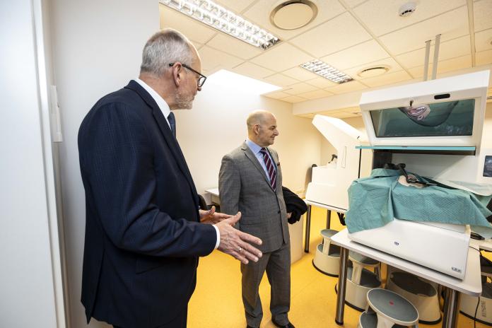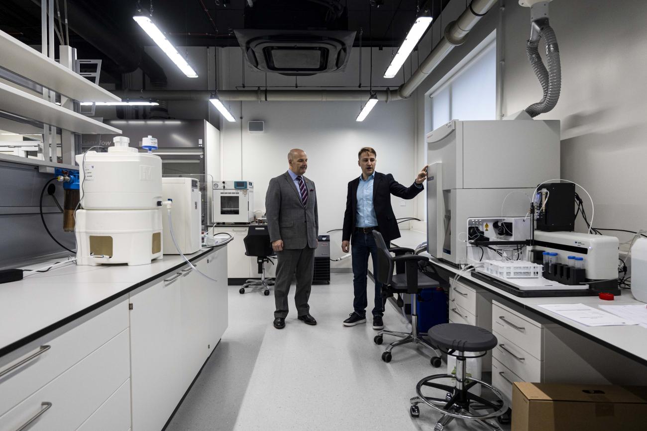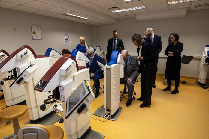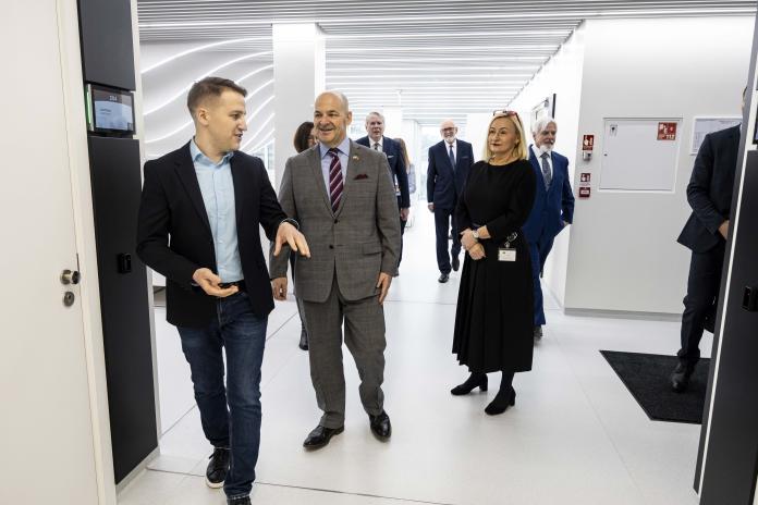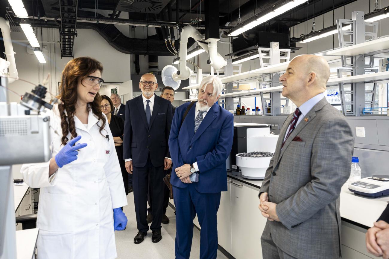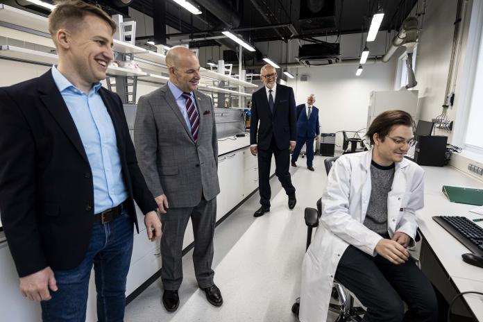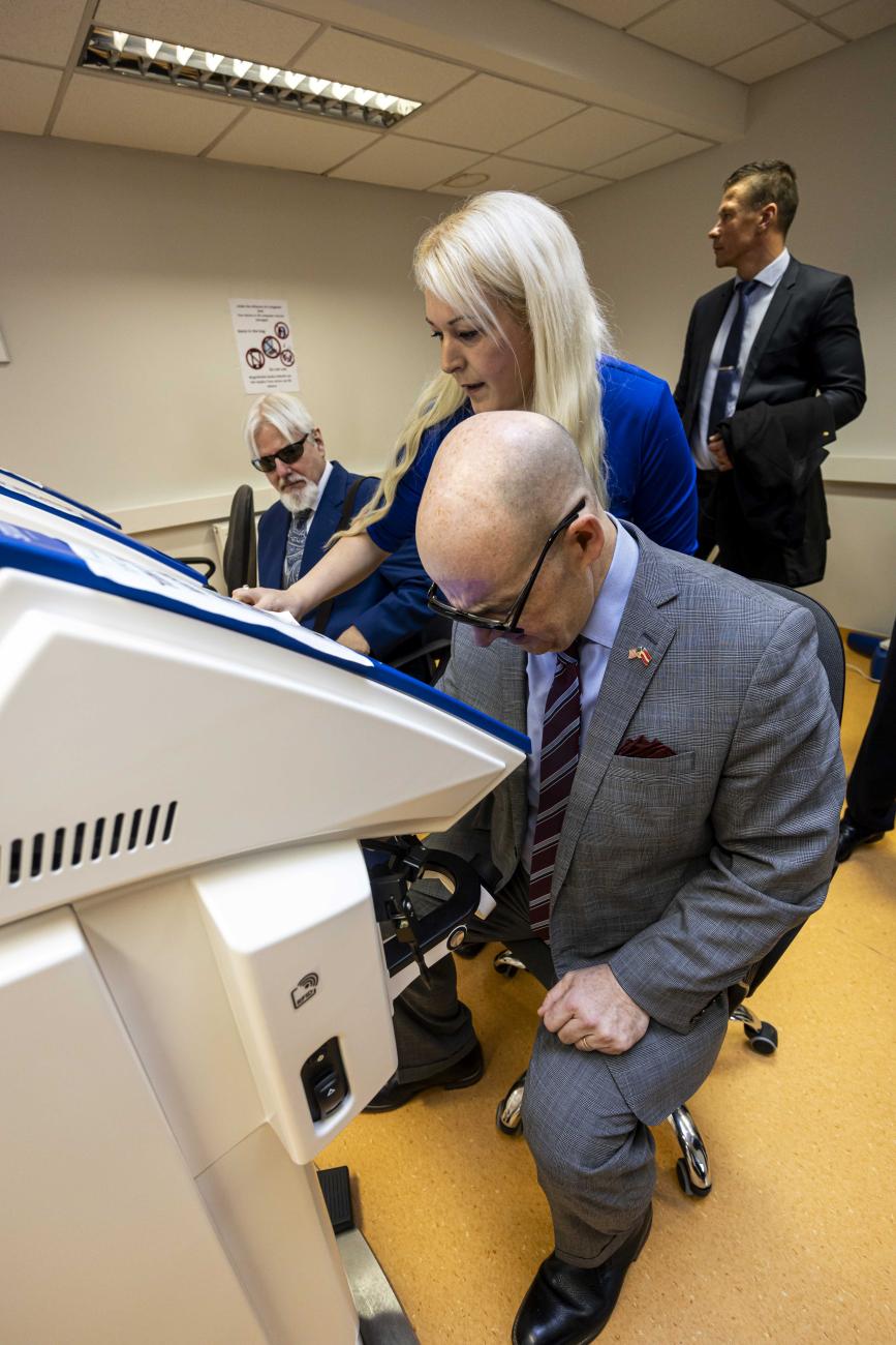 ASV vēstnieks apmeklē RSU farmācijas laboratorijas un izmēģina zobārstniecības simulācijas tehnoloģijas