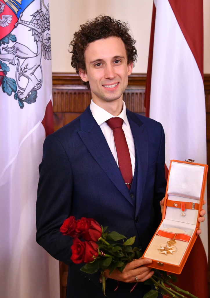 Kārlis ar saņemto Atzinības krustu. Foto no privātā arhīva