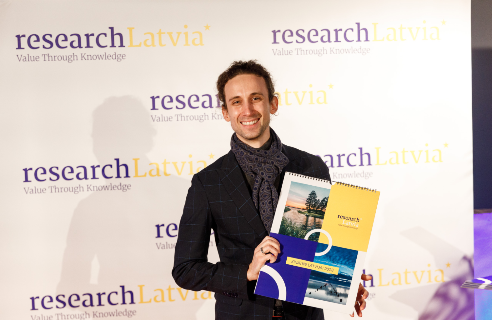 Kārlis 2023. gada kalendāra Zinātne Latvijai prezentācijas pasākumā. Foto no privātā arhīva