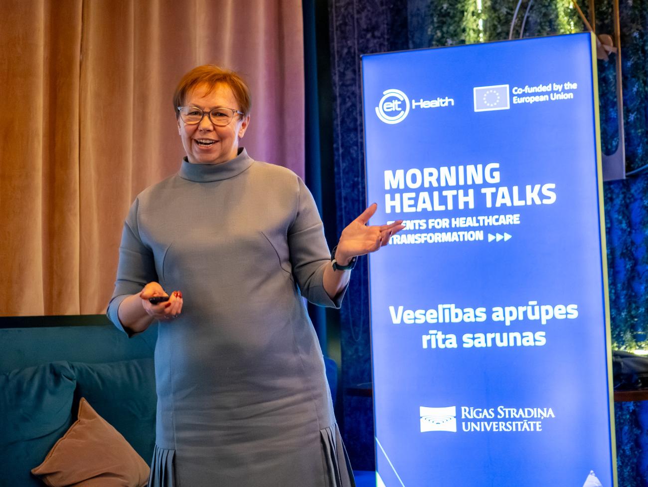 Veselības aprūpes rīta sarunu laikā Rīgas Stradiņa universitātes (RSU) metodiskās veselības centra ģimenes medicīnas jomā vadītāja Alina Dūdele prezentēja pētījumu Krūts vēža ārstēšanas ekonomiskais ieguvums, parādot, kā datu izmantošana var palīdzēt novērtēt tiešos veselības un finanšu ieguvumus un netiešos ekonomiskos ieguvumus no ieguldījumiem krūts vēža ārstēšanā.