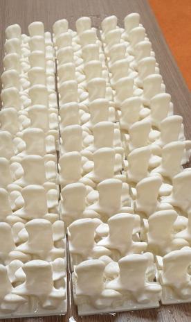 Studentiem, kurus padziļināti interesē neiroloģija un neiroķirurģija, viena no pamatprasmēm ir lumbālpunkcija – manipulācija, kad speciāla adata tiek ievadīta mugurkaula kanālā ar nolūku iegūt muguras smadzeņu šķidrumu. Ierasti prasmes veikt šo manipulāciju jaunieši trenē klātienē uz MITC simulāciju trenažiera. Tā kā tas patlaban nav iespējams, tad klīnisko simulāciju laboranti, speciālisti un inženieri sadarbībā ar RSU Anatomijas un antropoloģijas institūta ekspertiem pēc vairāk nekā 15 prototipu izveides raduši visveiksmīgāko risinājumu divu jostas skriemeļu modelim. Tas tika ar 3D printeri izdrukāts un papildināts ar īpašu konstrukciju – caurulē ievietotu želatīna gēlu, kas imitē pacienta audus. Aprīkots ar korķi, kas trenažierī gādāja par pietiekamu spiedienu spinālajam šķidrumam, šis trenažieris kopā ar šļirci nonāca pie topošajiem mediķiem, kuri neirologa Jāņa Vētras vadībā trenēja gan teorētiskās, gan praktiskās zināšanas lumbālpunkcijas veikšanai. Par šiem inovatīvajiem risinājumiem ļoti gandarīta ir Neiroloģijas un neiroķirurģijas studentu zinātniskā pulciņa vadītāja Marija Luīze Kalniņa, atzīmējot, ka RSU MITC izstrādātais aprīkojums ir lielisks veids, kā attālināti slīpēt savas klīniskās prasmes.