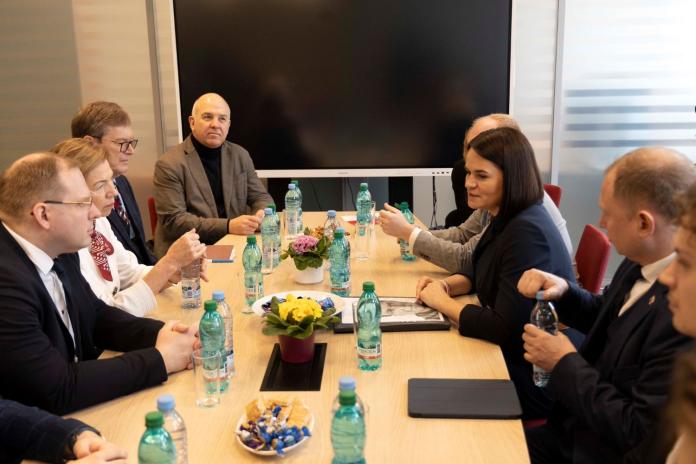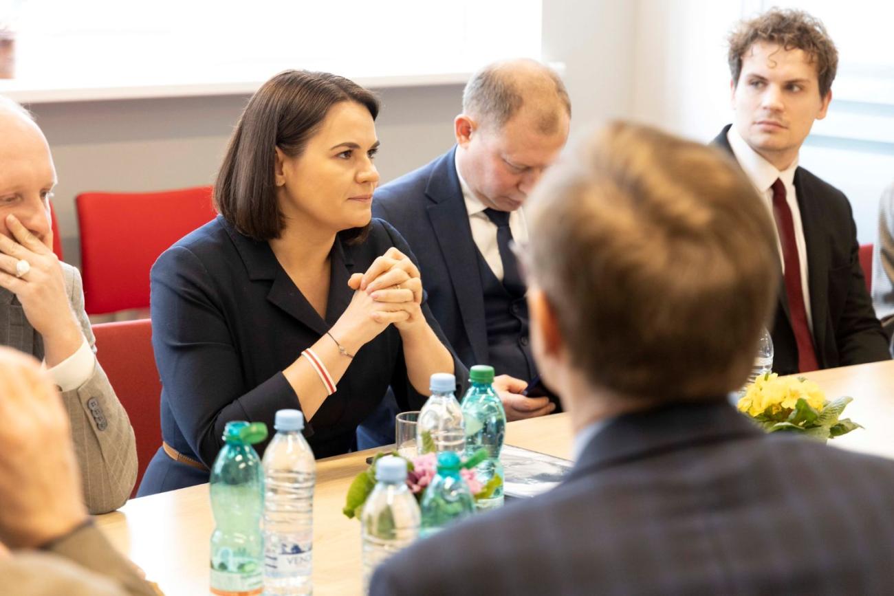 Svjatlana Cihanouska uzsvēra sankciju režīma nozīmi esošā režīma vājināšanā un īpaši pateicās Latvijai par sniegto atbalstu Baltkrievijas demokrātiskajiem spēkiem.