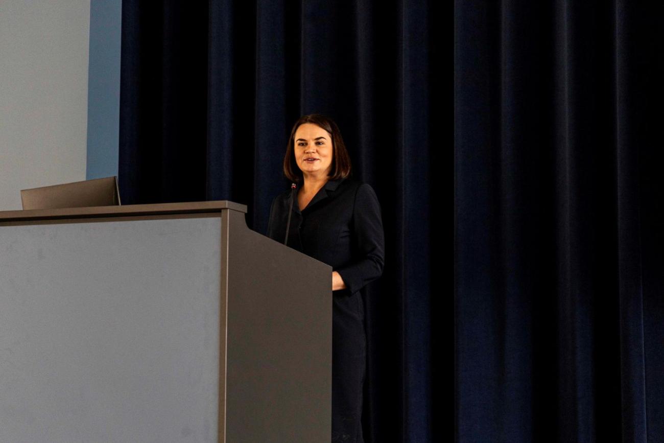 Īpaša uzmanība lekcijā tika vērsta uz nepieciešamību diskutēt, runāt un neaizmirst par Baltkrievijas jautājumu, aicinot izprast, cik baltkrievu cīņa par demokrātiju ir nozīmīga visai Eiropai.
