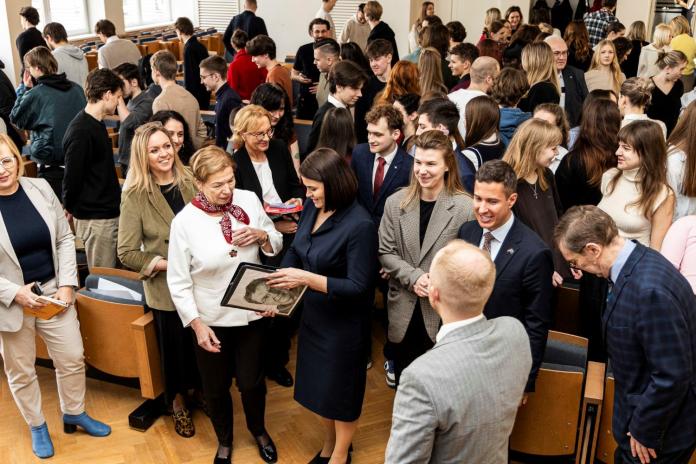 Baltkrievijas opozīcijas līdere Svjatlana Cihanouska vieslekcijā RSU uzsvēra jaunatnes nozīmi demokrātiskās pārmaiņās