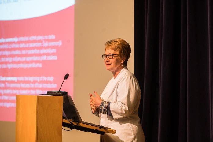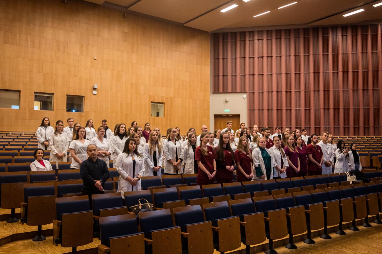 Pasākumā gan vietējie, gan ārvalstu studenti deva svinīgo solījumu par apņemšanos godprātīgi veikt zobārsta un zobu higiēnista profesijas pienākumus. Pirms tam viņus uzrunāja Zobārstniecības fakultātes dekāns asoc. prof. Andris Ābeltiņš un viņi tika iepazīstināti ar katras klīnikas un katedras darba organizāciju. Turklāt studentiem vēlreiz tika atgādināts par infekcijas kontroli, ētikas un uzvedības normām klīnikās.