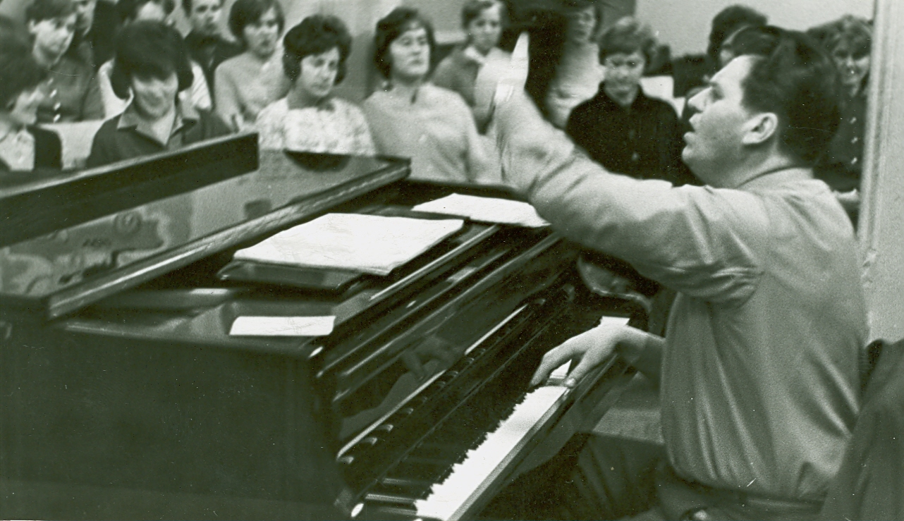 1968. gads. Kora "Rīga" mēģinājums VEF Kultūras pilī. Foto no RSU muzeja krājuma