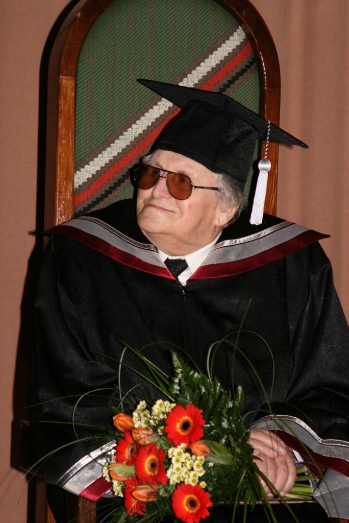 2007. gadā Rīgas Stradiņa universitāte prof. Jānim Dūmiņam piešķīra Goda doktora nosaukumu. Foto no RSU muzeja krājuma