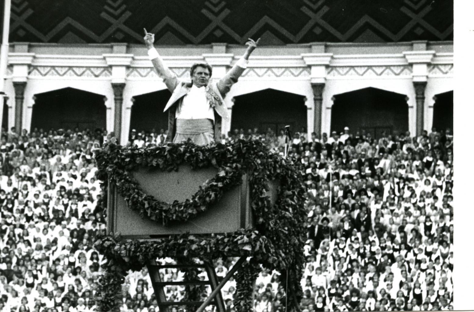 1985. gads. Jānis Dūmiņš – Dziesmu svētku virsdiriģents. Foto no RSU muzeja krājuma