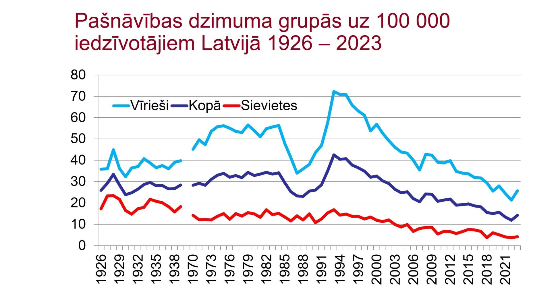 CSB. Mirstība pēc nāves cēloņa, dzimuma un vecuma grupas 2010 – 2023. https://ej.uz/pasnavibas2010_2023 :Apmeklēts 20.02.25