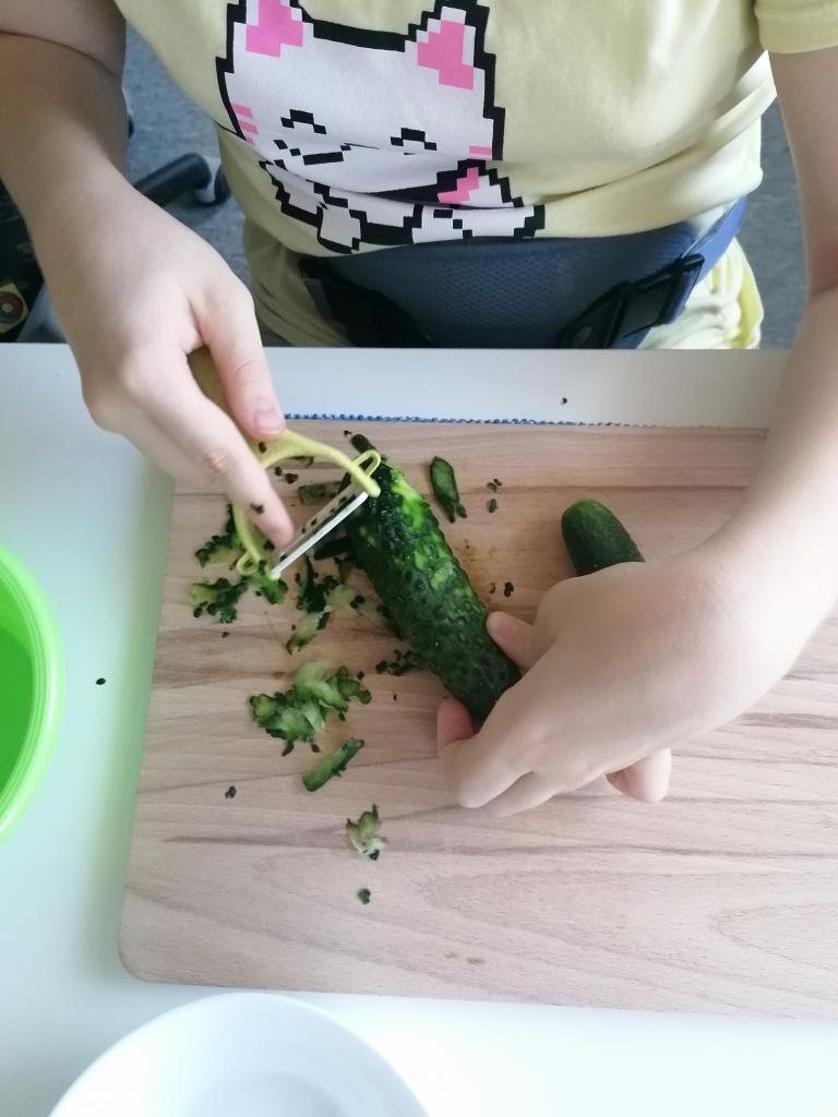 Mazajiem palīdzu apgūt ģērbšanos, apģērba sapogāšanu, auklu siešanu, palīdzu bērnam pašam iemācīties paēst, kā arī pilnveidoju sīko motoriku – kopā griežam un zīmējam. Varu teikt, ka mana ikdiena bieži paiet spēlējoties, bet tas notiek mērķtiecīgi. Piemēram, lai apgūtu apavu un zeķu novilkšanu, iesaistu bērnu spēlē – novelkam apavus, lai pēc tam dotos rotaļāties uz paklāja. Ikdienā gana bieži arī gatavojam sviestmaizes, vafeles un citus ēdienus, lai veicinātu bērna neatkarību ikdienas dzīvē.