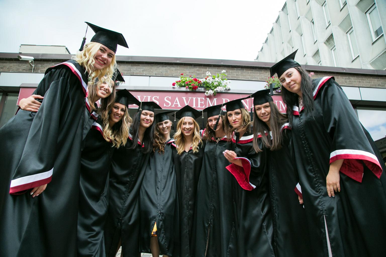 Kristiāna (no kreisās) izlaiduma dienā kopā ar kursabiedrenēm.