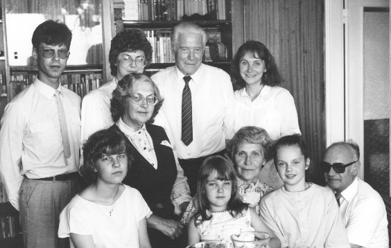 Paulis Cīrulis (stāv 2. no labās) ar abām meitām – Marutu (1. no labās) un Baibu (3. no labās), sievu Ainu (sēž 3. no labās) un mazmeitām. Foto no Cīruļa ģimenes arhīva.