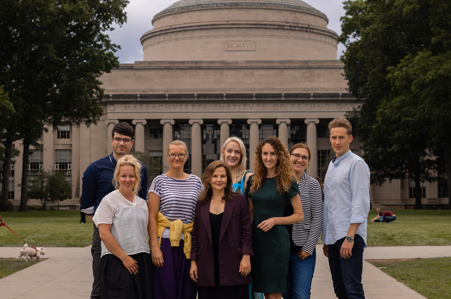 RSU darbinieku grupa pie Masačūsetsas Tehnoloģiju institūta ēkas Bostonā. No kreisās: Matīss Sīlis (Pedagoģiskās izaugsmes centrs), Lāsma Šķestere (Komunikācijas fakultāte), Nora Jansone-Ratinika (Pedagoģiskās izaugsmes centrs), Evita Grigoroviča (Medicīnas izglītības tehnoloģiju centrs), Anda Ķīvīte-Urtāne (Sabiedrības veselības institūts), Karina Palkova (Juridiskā fakultāte), Ieva Puzo (Komunikācijas fakultāte) un Raimonds Strods (Pedagoģiskās izaugsmes centrs)