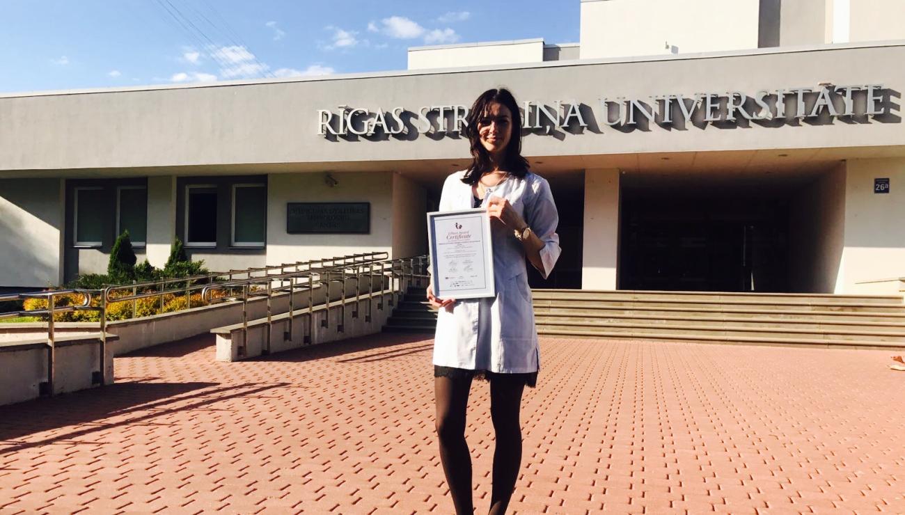 Denija Piešiņa ir Rīgas Stradiņa universitātes Medicīnas fakultātes studiju programmas Medicīna 5. kursa studente. Viņa izstrādājusi zinātniski pētniecisko darbu Vecāku attieksme pret bērnu vakcināciju Latvijā (Parental Attitudes towards Children’s Vaccination in Latvia).