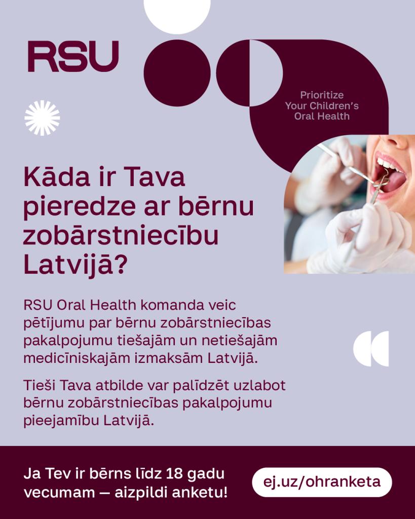 Rīgas Stradiņa universitātes (RSU) Zobārstniecības fakultātes pētniekisākuši nacionāla mēroga pētījumu par bērnu kariesa ekonomisko, sociālo un emocionālo slogu Latvijas ģimenēm. Pētījumā tiek analizēta bērnu līdz 18 gadu vecumam kariesa ietekme, balstoties vecāku un primāro aprūpētāju pieredzē.