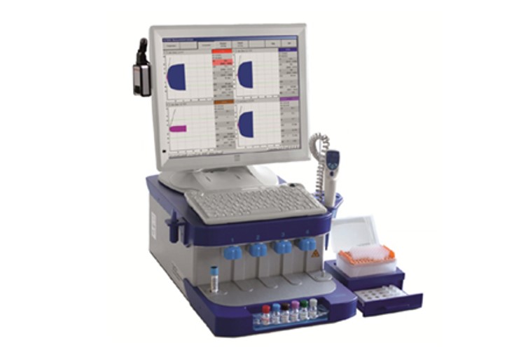 Rotācijas tromboelastometrijas analizators. Attēls no Jevgeņija Stepanova disertācijas