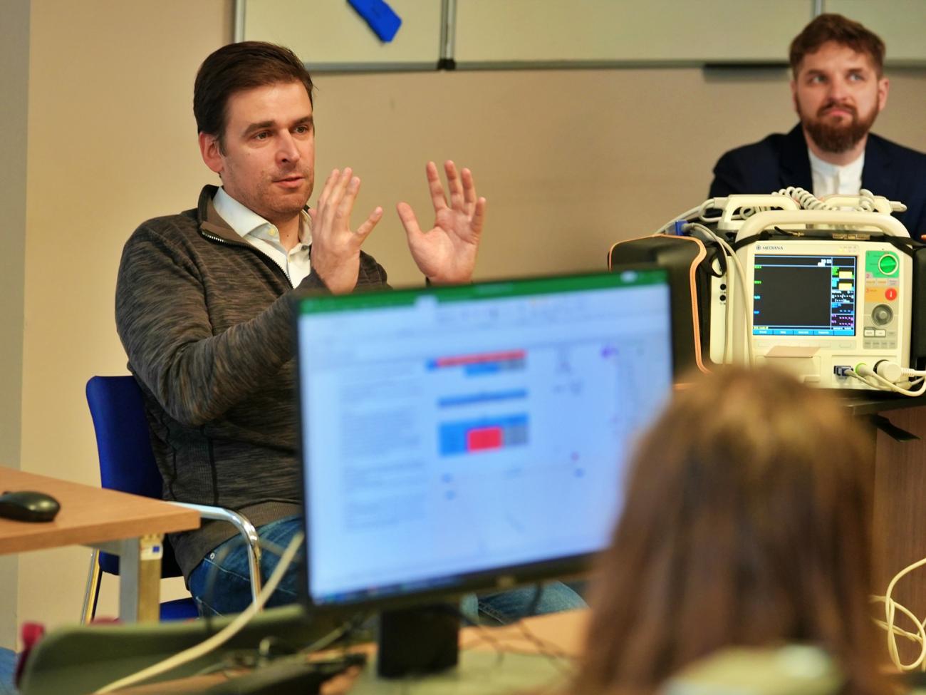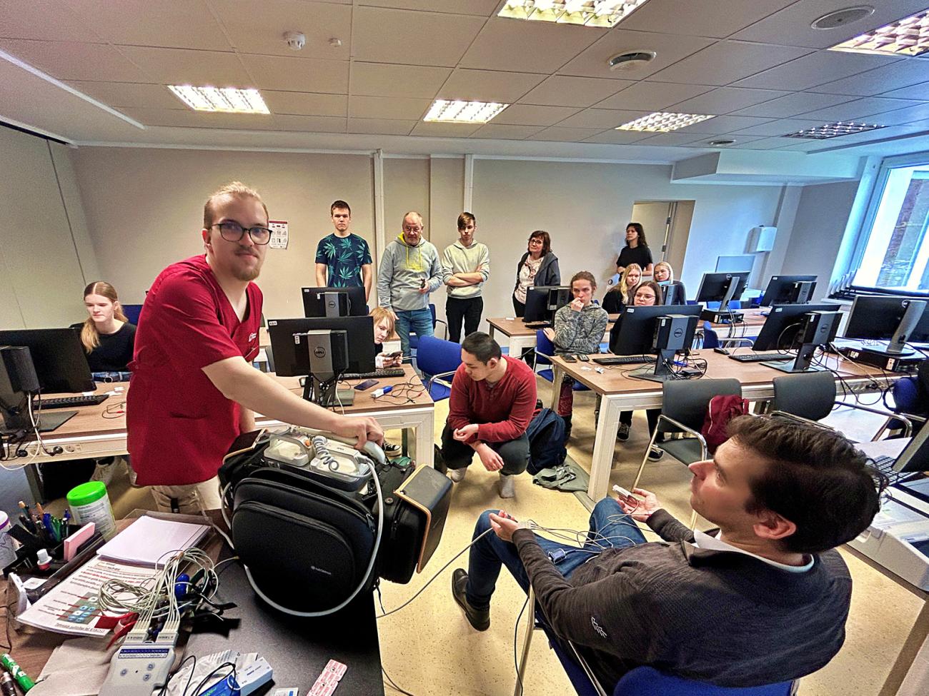 Tāpat MITC simulāciju eksperts Aleksandrs Oborins prasmīgi nodemonstrēja elektrokardiogrammas iespējas, izmantojot portatīvo medicīnisko ierīci, kas nodrošina gan automātisku, gan manuālu ārējo defibrilācijas funkciju, kā arī sinhronizētās kardioversijas funkciju, transkutāno kardiostimulēšanu un pacienta monitorēšanas funkciju.