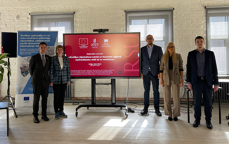 29. aprīlī Rīgas Stradiņa universitātes (RSU) pētnieki Kuldīgā, Adatu Fabrikas telpās, aizvadīja trešo no kopumā pieciem plānotajiem reģionālajiem semināriem, kurā diskutēja par aktuālajām drošības problēmām un izaicinājumiem Latvijā un Kurzemes reģionā, kopīgi meklējot risinājumus to novēršanai. Seminārā piedalījās Kurzemes reģiona lielāko pašvaldību pārstāvji, pašvaldības policiju pārstāvji, Valsts policijas amatpersonas, reģionālo mediju pārstāvji, Pulkveža Oskara Kalpaka profesionālās vidusskolas vadība, kā arī augstskolu studējošie.