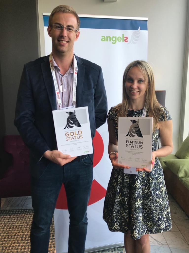 Šonedēļ Eiropas insulta biedrības konferencē (Europeans Stroke Organization conference 2018) Gēteborgā tika pasniegtas biedrības izveidotās programmas Angels Initiative (Eņģeļu iniciatīva) izveidotā balva (Angels Award), ko piešķir insulta vienībām, kas atbilst starptautiskam līmenim pacientu aprūpē. Rīgas Austrumu klīniskā universitātes slimnīca saņēma platīna statusa apbalvojumu un pašlaik ir vienīgā ārstniecības iestāde Latvijā, kas saņēmusi tik augsta līmeņa apbalvojumu. P. Stradiņa Klīniskajai universitātes slimnīcai tika piešķirts zelta statusa apbalvojums. Abu slimnīcu insulta vienību izglītojošajā darbā iesaistīts arī Rīgas Stradiņa universitātes Medicīnas fakultātes Neiroloģijas un neiroķirurģijas katedras akadēmiskais personāls.