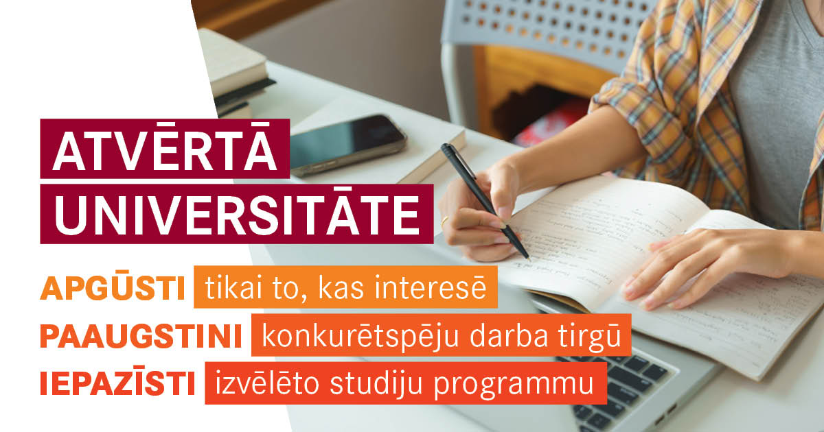 Ja gribat iegūt jaunas kompetences un prasmes, paaugstināt savu konkurētspēju darba tirgū, iepazīt studijām izvēlēto programmu vai studēt arī tad, ja kāda iemesla dēļ nevarat apgūt pilnu studiju programmu augstskolā, jums ir vienreizēja iespēja studēt Rīgas Stradiņa universitātes (RSU) Atvērtajā universitātē, kurā nav iestājpārbaudījumu.