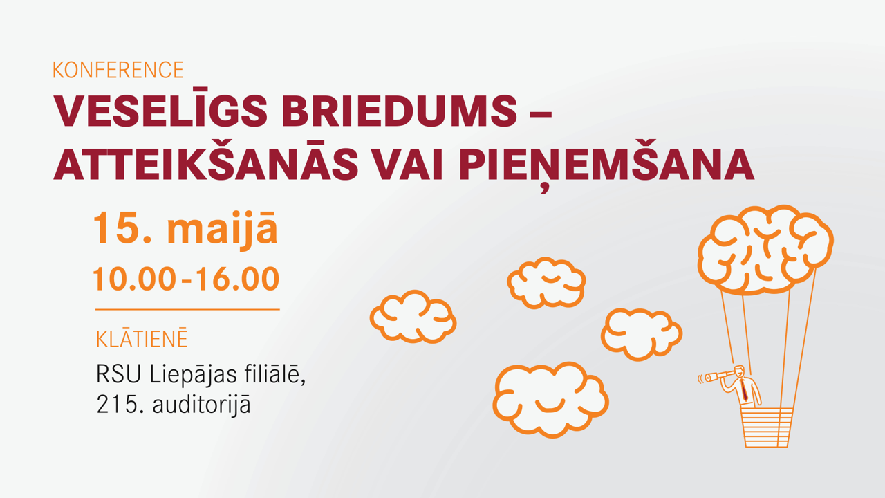 Rīgas Stradiņa universitātes (RSU) Liepājas filiāle trešdien, 15. maijā, organizē starpdisciplināru klātienes konferenci Veselīgs briedums – atteikšanās vai pieņemšana?