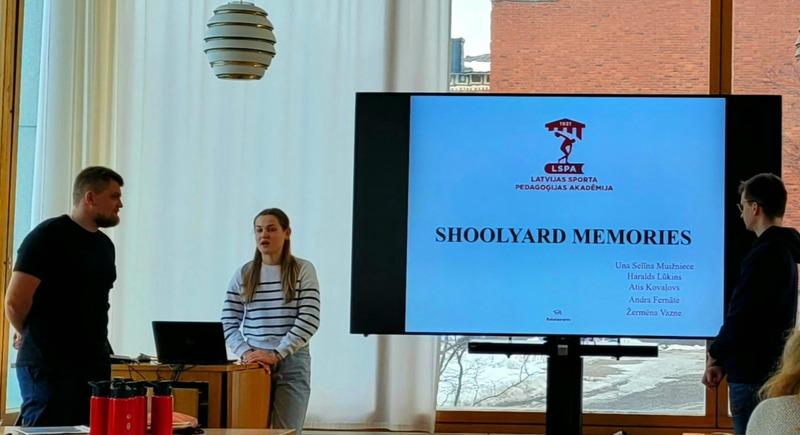Katra valsts dalībnieki apmainījās pieredzē, prezentējot skolu pagalmu sniegtās iespējas fizisko aktivitāšu paaugstināšanai ikdienas skolas dzīvē savā valstī. Darba nobeigumā, studējošie kopīgi, strādājot starptautiskās grupās, izveidoja un prezentēja “Sapņu skolas pagalma” vīziju.