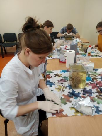 Medicīnas studenti palīdz sagatavot preparātus iekļaušanai Anatomijas muzeja ekspozīcijā