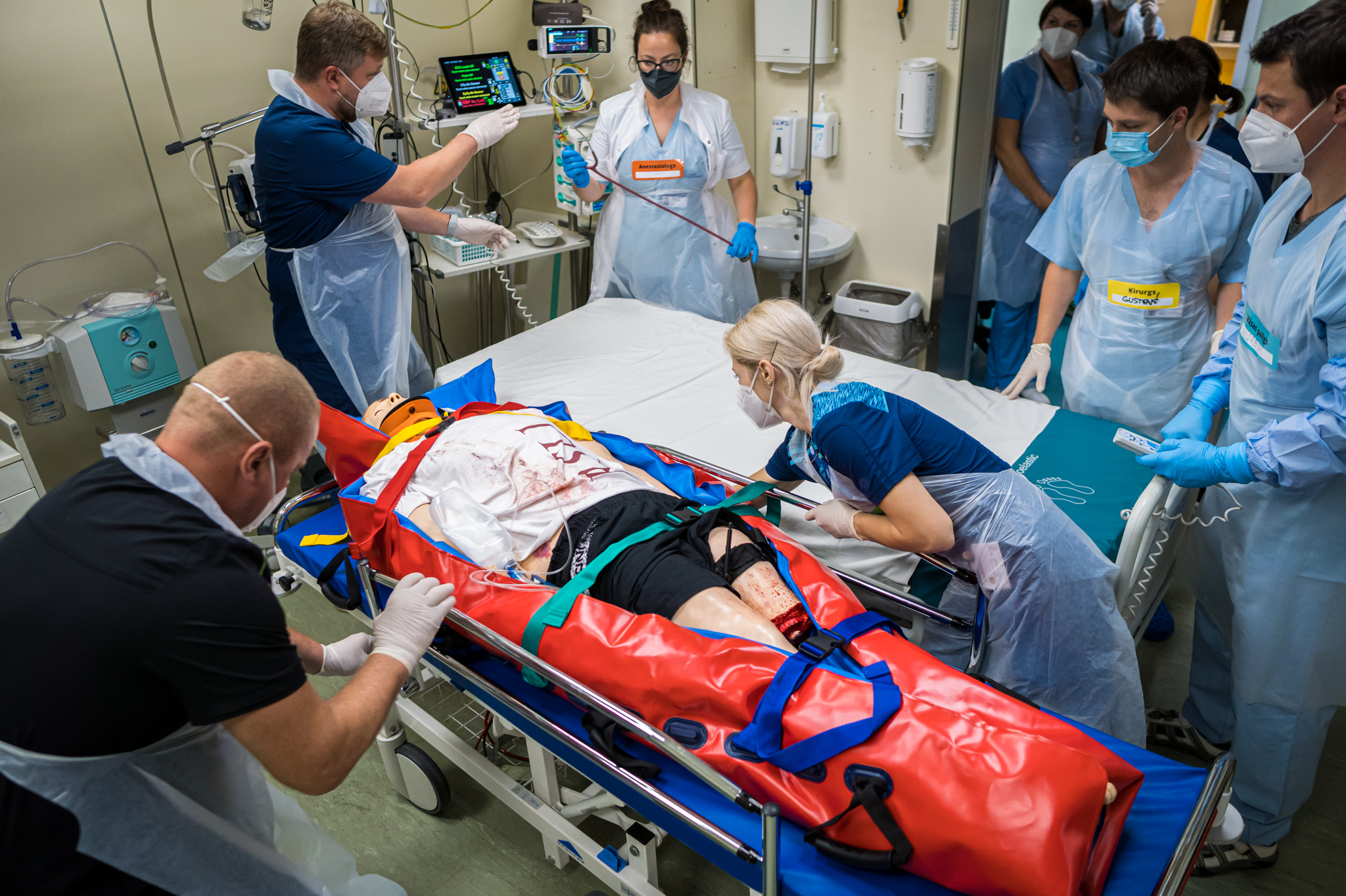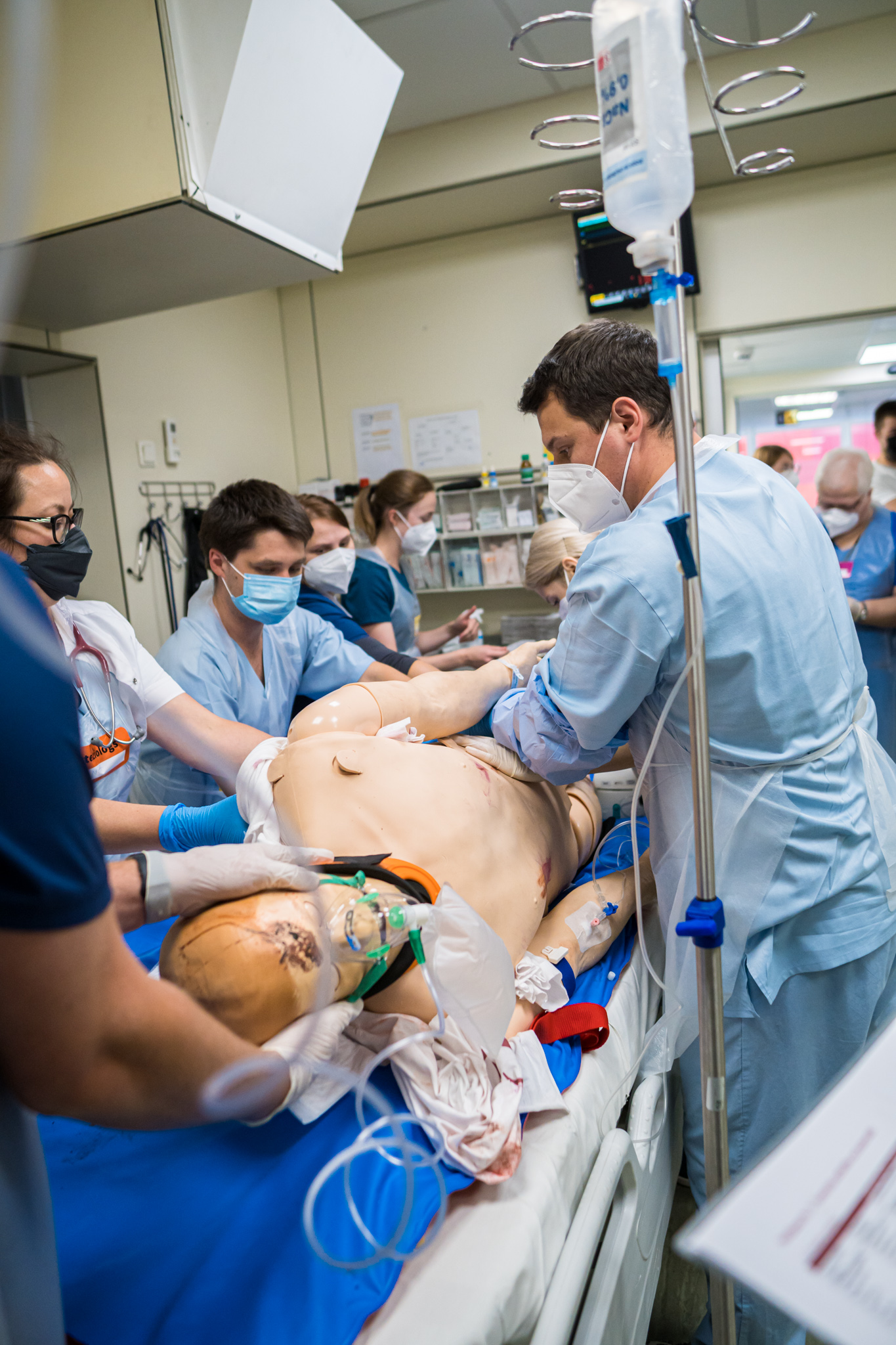 Simulācijas nedēļas laikā universitāšu slimnīcās tika organizētas divas apjomīgas in-situ simulācijas scenāriju izspēles ar vairākiem cietušajiem, kuru laikā uzņemšanas nodaļu ārstu komandām bija jāplāno nepieciešamie resursi, jāveic cietušo izmeklēšana un jāsniedz nepieciešamā palīdzība. Cietušo lomā iejutās gan simulēti pacienti, gan augstas ticamības manekeni, kuriem iespējams veikt dažādas invazīvas manipulācijas. In-situ simulācijas veids paredz, ka simulācijas scenārija izspēle notiek nevis speciāli iekārtotās mācību telpās, bet reālā darba vidē, tādējādi iespējams izvērtēt ne tikai iesaistīto dalībnieku prasmes un sadarbību, bet arī slimnīcas telpu un aprīkojuma piemērotību un pieejamību, nepieciešamības gadījumā to pilnveidojot.