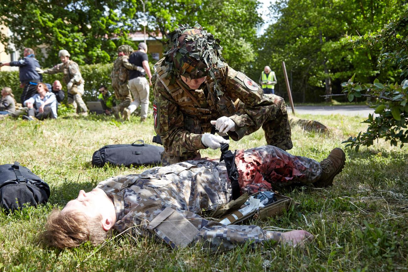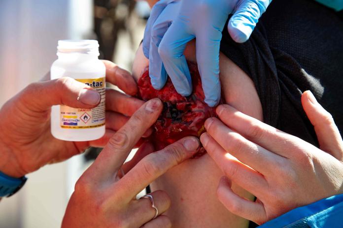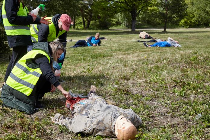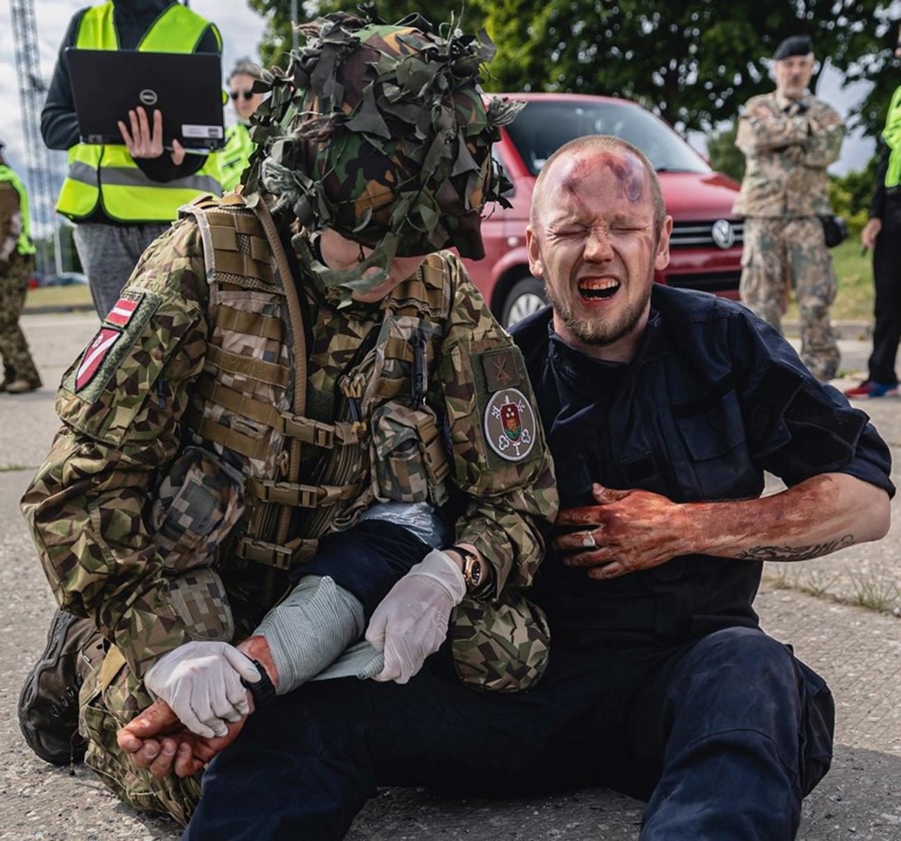 MITC nodrošināja simulētu cietušo sagatavošanu šīm mācībām, izveidojot lomu aprakstus, veicot lomu instruktāžas, kā arī sagatavojot individuāli izstrādātas silikona brūces un mulāžas.