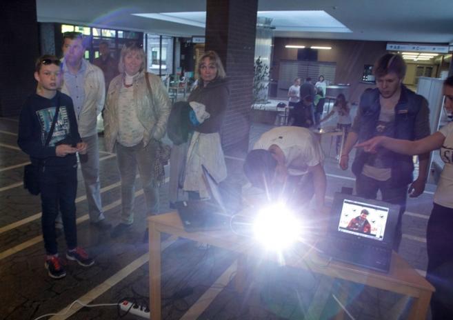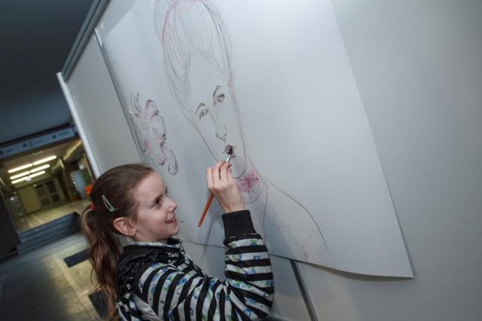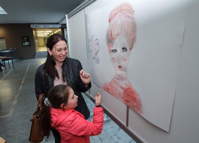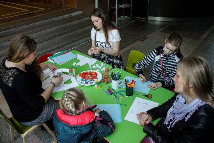 Ģimenēm ar bērniem īpaši patika Saulainais stūrītis, kur kopā ar studentiem bērni zīmēja zelta zirgu.