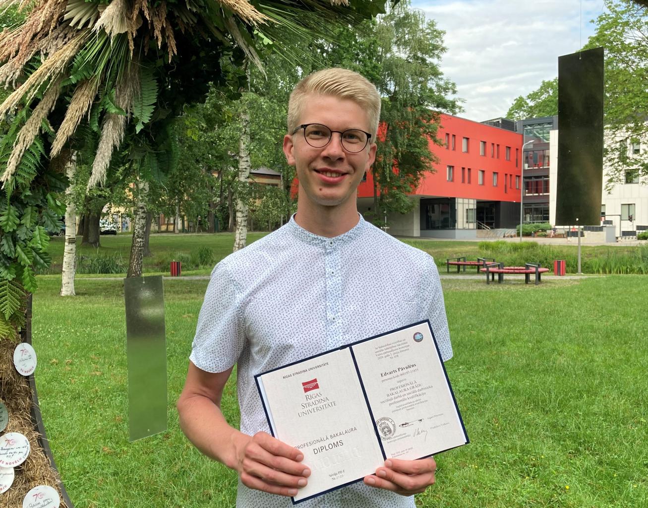 Aiz muguras viņam sociālā darba bakalaura studijas Rīgas Stradiņa universitātē (RSU), un pašlaik jāgatavojas maģistra darba aizstāvēšanai. Neraugoties uz savu aizņemtību, 25 gadu vecais Edvarts atrod laiku arī tam, lai darbotos RSU studiju virziena Sociālā labklājība kvalitātes padomē, kas regulāri pārrauga un izvērtē studiju programmu saturu, iesniedz priekšlikumus par studiju kvalitātes uzlabošanu u. c.