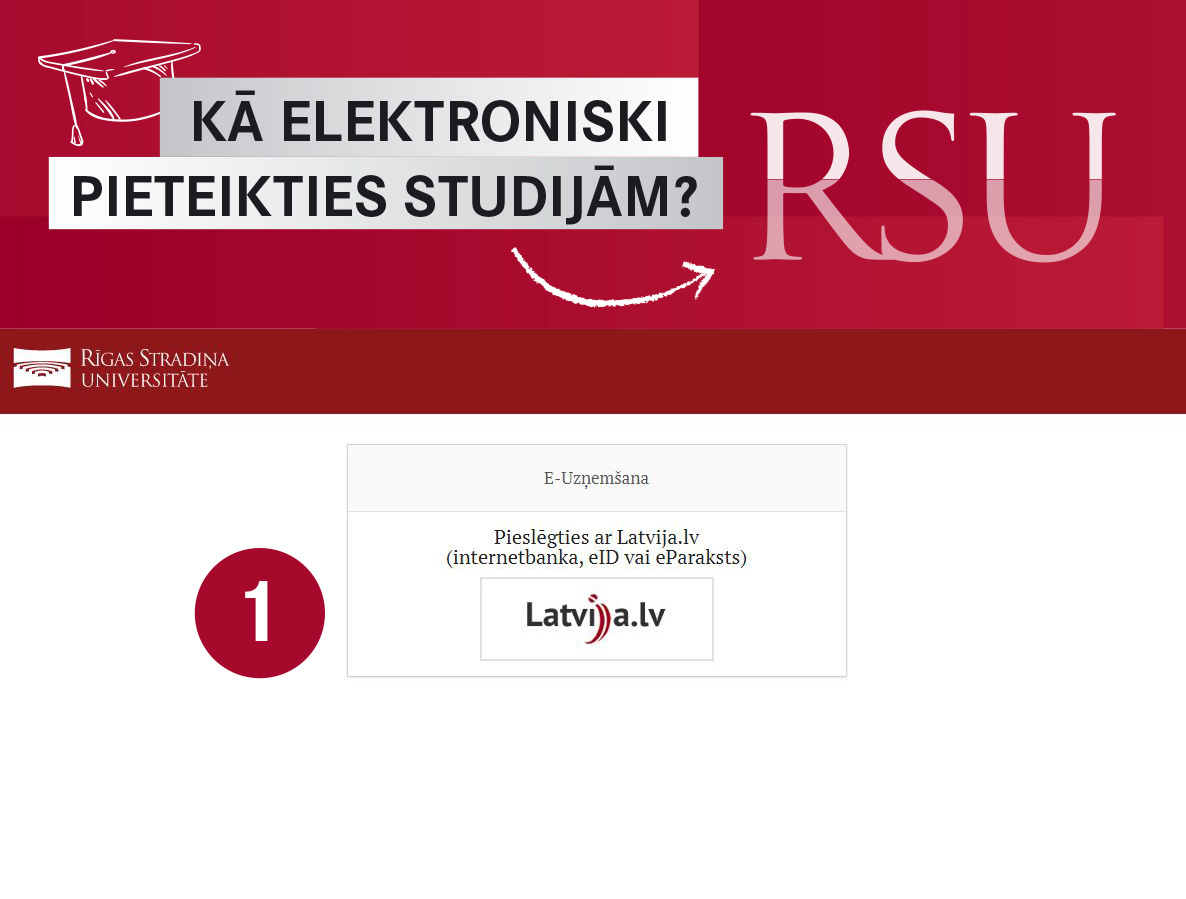 1. Pieslēdzies RSU e-Uzņemšanas sistēmai, izmantojot Latvija.lv