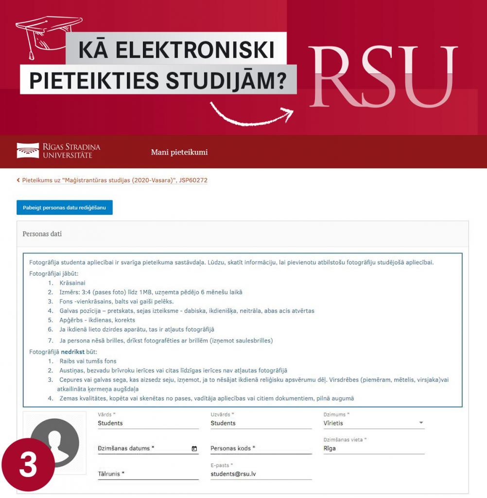 3. Aizpildi datus par sevi un pievieno fotogrāfiju saskaņā ar norādījumiem