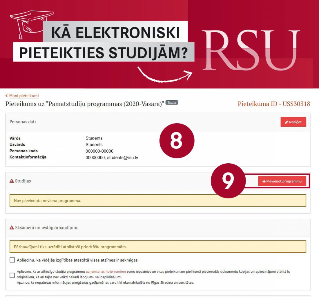 9. Pievieno studiju programmas, kurās vēlies iesniegt savu pieteikumu