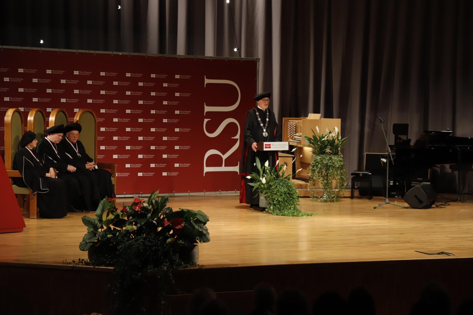 RSU rektors Aigars Pētersons, uzrunājot jaunos ārstus rezidentus, uzsvēra: “Šodien sveicam speciālistus, kas galvenokārt bija tie, kuri uz saviem pleciem iznesa pandēmijas krīzi. Viņu nesavtīgais darbs riska zonās paliks nenovērtējams. Paldies par to!